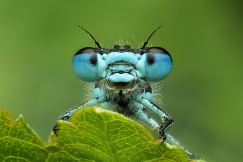 The next macro image comes from England and illustrates the focus stack of a common blue damselfly (Enallagma cyathigerum), found beside a river in the Norfolk Broads National Park.