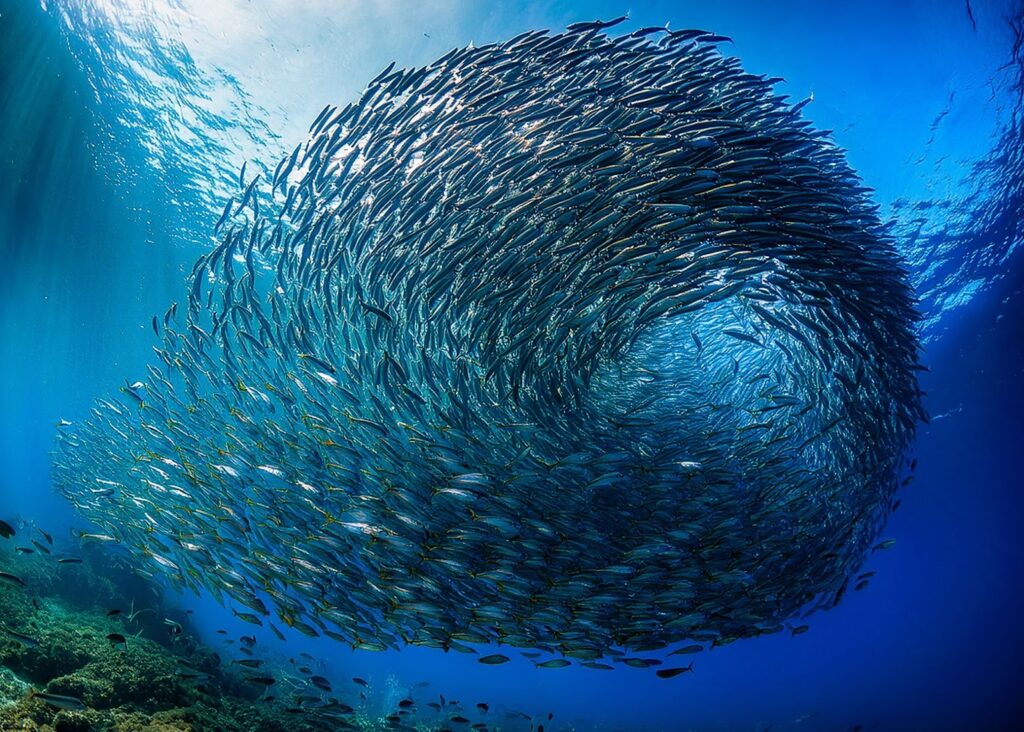 Jhuma Datta: “Breathtaking image. The way the fish moves in unison, creating a swirling vortex, is truly captivating”.